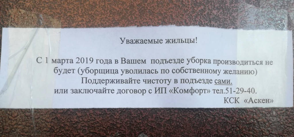 Поэтому такие об'явления появились на дверях? Весело!